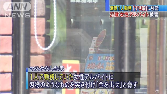 深夜1人勤務の すき家 に強盗 女性バイトが被害 よもやま日報