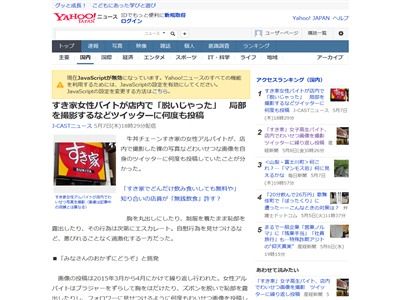 ツイッター すき家女性バイトが店内で 脱いじゃった みなさんのおかずにどうぞ と局部を撮影するなどツイッターに何度も投稿 15 05 07